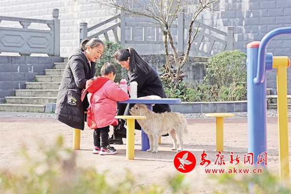 3月18日,大竹園鎮(zhèn)糧茶村,群眾在配套設(shè)施完善的集鎮(zhèn)游玩。周濬 攝VWa安康新聞網(wǎng)