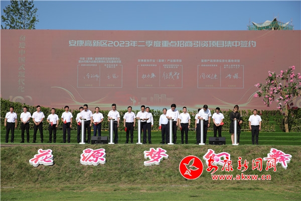 活動現(xiàn)場,還組織開展了納新黨員集中宣誓和老黨員重溫入黨誓詞儀式;為“光榮在黨50年”的老黨員代表頒發(fā)了紀(jì)念章;為安康高新區(qū)“學(xué)思踐悟新思想、干闖當(dāng)頭譜新篇”知識競賽獲獎?wù)哳C獎。同時,還舉行了“安康高新區(qū)2023年二季度重點(diǎn)招商引資項(xiàng)目集中簽約活動”,總投資24.7億元的9個產(chǎn)業(yè)項(xiàng)目在現(xiàn)場領(lǐng)導(dǎo)、嘉賓的共同見證下進(jìn)行了集中簽約。
