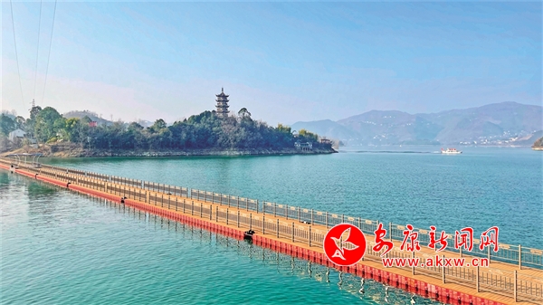 △ 瀛湖新建浮橋,全長256米、寬6米,連接金螺島與唐家鏈子