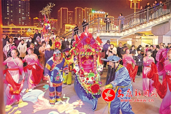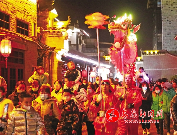 從1月24日至2月24日,嵐皋縣還在城區(qū)“嵐河印象特色街區(qū)”舉行嵐河夜畫大型燈光秀暨民俗文化展演系列活動(dòng);顒(dòng)內(nèi)容分為兩部分,一個(gè)是音樂燈光秀。利用縣城河濱燈光,結(jié)合嵐皋本地歌曲,打造新穎獨(dú)特和極具視聽沖擊力的秀場,為群眾呈現(xiàn)一個(gè)精彩紛呈、歡快奇妙、神奇的光影世界;另一個(gè)是“非遺過大年·民俗鬧新春”民俗文化展演。春節(jié)期間組織舞龍、舞獅、采蓮船、大道鑼鼓等民俗節(jié)目在嵐河兩岸進(jìn)行展演,營造喜慶熱鬧的氛圍,讓市民游客深入了解嵐皋縣民俗文化內(nèi)涵。
