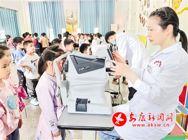 4月17日,漢陰縣婦幼保健院到蒲溪鎮(zhèn)小學(xué)教育集團(tuán)開(kāi)展學(xué)生視力檢測(cè)。 鄧永新 攝