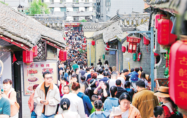 “吃個石鍋魚、品杯柚子茶,再去看特色民俗表演,體驗古風(fēng)古韻……”這個“五一”,國家AAAA級景區(qū)漢江石泉古城憑借其古風(fēng)古韻、特色美食和豐富多彩的文旅活動,吸引了全國各地游客前來“打卡”,可謂是贏得了“潑天的富貴”。青磚灰瓦的秦巴老街在陽光下熠熠生輝,絡(luò)繹不絕的游客,或駐足于古色古香的店鋪前聆聽歷史的回聲,或擠坐在火爆的石鍋魚餐館縱享味蕾盛宴,或沉浸于各種傳統(tǒng)文化活動中感受文化的魅力,為老街這幅水墨畫卷賦予靈動的色彩。“五一”假期,石泉秦巴老街開展繪畫攝影展、民俗收藏展、鬼谷子縱橫棋PK、鬼谷子誕辰紀(jì)念活動、手工制作、茶歇、漢服演繹、彈唱、縱橫棋體驗、社團(tuán)展演、常態(tài)化將軍巡城、縣令審案、繡球迎親等10多項文旅小節(jié)目演繹活動,以傳承傳統(tǒng)文化為主線,深度推進(jìn)文旅融合,讓各地游客不虛此行。“古色古香的老街風(fēng)情,極具歷史沉淀,加上這些互動性的民俗表演,精彩紛呈,值得一游!”來自寶雞的游客林女士由衷地贊美。