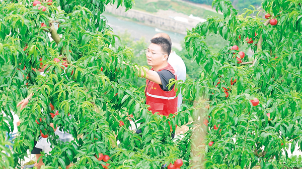 自此之后,該村先后開墾撂荒地1200余畝,逐步建成了300畝桃園、300畝烤煙、500畝茶園和兩個養(yǎng)雞場。園區(qū)建好了,僅靠村股份合作社的力量來經(jīng)營和管理卻又力有不逮。面對這個問題,該村發(fā)揮黨員示范作用,把3個園區(qū)交給年富力強、有創(chuàng)新意識和經(jīng)營頭腦的3名年輕黨員管理,把兩個養(yǎng)雞場轉(zhuǎn)租給2個公益崗來經(jīng)營,村集體只收租金和服務費。胡維山就是承包300畝油桃產(chǎn)業(yè)園的年輕黨員。去年油桃進入豐產(chǎn)期后,他支付了30多萬元勞務工資后,還多為村集體經(jīng)濟貢獻了2萬多元的資金。今年油桃已經(jīng)開園,預計可以收入50余萬元。