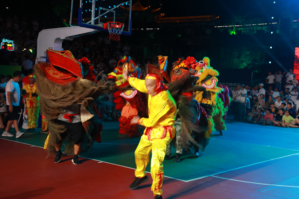 8月27日,賽事已經(jīng)連續(xù)激戰(zhàn)了12個(gè)日夜,每一場(chǎng)比賽都讓觀眾們大飽眼福。晚9時(shí)左右,隨著第一場(chǎng)比賽的終場(chǎng)哨聲響起,整個(gè)廣場(chǎng)的氛圍并沒(méi)有因?yàn)楸荣惖慕Y(jié)束而冷卻,反而因?yàn)榻酉聛?lái)的精彩節(jié)目而更加熱烈起來(lái)。《南宮雄獅》作為中場(chǎng)休息的特別節(jié)目火熱上演。隨著激昂的鼓點(diǎn)響起,兩只色彩鮮艷、造型威猛的雄獅在舞獅者的操控下,瞬間吸引了所有人的目光。它們時(shí)而翻騰跳躍,展現(xiàn)出驚人的靈活與力量;時(shí)而憨態(tài)可掬,逗得觀眾捧腹大笑。舞獅者們更是憑借高超的技藝和默契的配合,將雄獅的威猛與靈動(dòng)演繹得淋漓盡致。