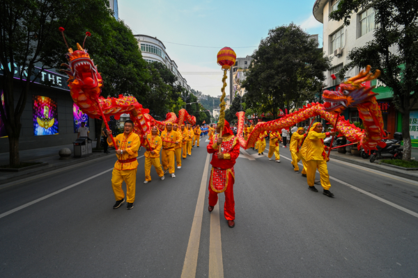 開(kāi)幕式規(guī)模宏大,異常精彩。貴州廣播電視臺(tái)知名節(jié)目主持人、貴州村BA節(jié)目主持人李旭涵、劉子豪兩位重量級(jí)主持人親臨主持,熟練專業(yè)而又激情的引導(dǎo)互動(dòng)為開(kāi)幕式晚會(huì)增添爆棚氛圍。歌手沙寶亮傾情演唱《最初的信仰》《又回首》《暗香》等歌曲,世界散打冠軍、國(guó)家散打隊(duì)主教練許家恒,全國(guó)競(jìng)走冠軍陳珍、全國(guó)青運(yùn)會(huì)冠軍田紫丹的互動(dòng)以及本土節(jié)目《旗開(kāi)得勝》《歡迎你到嵐皋來(lái)》《巴山魔芋情》等將嵐皋豐厚的旅游資源、特色產(chǎn)品、人文風(fēng)情展現(xiàn)得淋漓盡致。無(wú)比酷炫的燈光秀、煙花秀閃耀全場(chǎng),56米巨龍騰空而起,光與影的交織變換構(gòu)成了一幅幅絕妙畫卷,現(xiàn)場(chǎng)掌聲雷動(dòng),喝彩聲、吶喊聲此起彼伏。