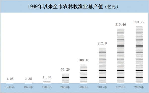 農(nóng)民生活日益豐裕。新中國成立以來,全市不斷加大農(nóng)村水、電、路建設的投入力度,加快農(nóng)村文化、教育、醫(yī)療等基本公共服務設施建設,“千村萬戶”工程進農(nóng)村,79.9萬建檔立卡貧困人口全部脫貧,992個貧困村全部出列,10個貧困縣區(qū)全部摘帽,如期實現(xiàn)全域脫貧,鄉(xiāng)村振興戰(zhàn)略成效明顯。農(nóng)村居民人均可支配收入大幅增加,從1978年的161元增加到2023年的14403元,增長近90倍,年均增長10.5%,2023年增長7.7%,高于城鎮(zhèn)居民人均可支配收入2.5個百分點。城鄉(xiāng)收入差距持續(xù)縮小,由2002年的3.74︰1縮小至2023年2.34︰1,共同富裕的幸福安康進一步邁進。