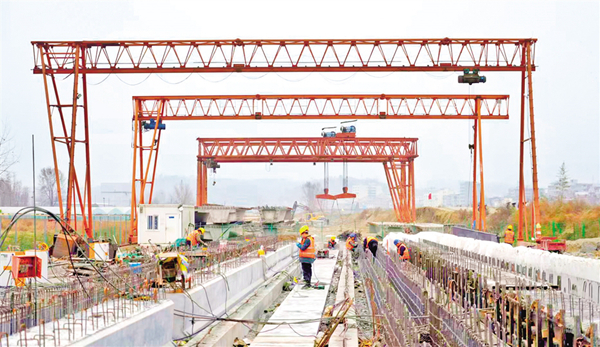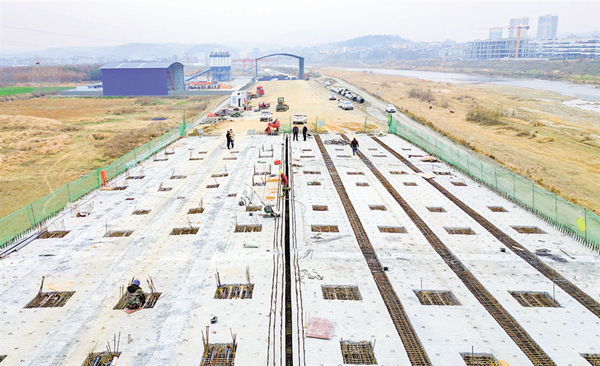 安康高新段項(xiàng)目生產(chǎn)經(jīng)理張占龍介紹,月河快速干道高新段全長(zhǎng)3.6公里,目前施工總體進(jìn)度達(dá)65%。近期,重點(diǎn)推進(jìn)控制性工程宋家營(yíng)大橋建設(shè)。宋家營(yíng)月河大橋橫跨月河與十天高速,特別是橫跨十天高速部分,因下方有高速行駛的車輛,施工難度和安全隱患較大。項(xiàng)目部在保證安全質(zhì)量的前提下,增加人力物力,大干快上,力爭(zhēng)6月底全線半幅通車。