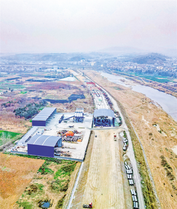 漢濱段預(yù)制梁場(chǎng)施工現(xiàn)場(chǎng)