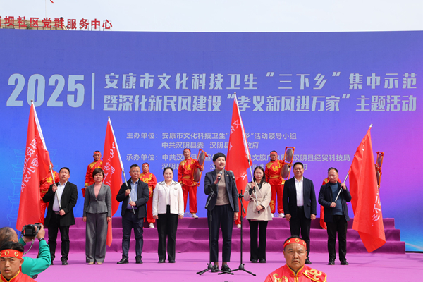 本網(wǎng)訊(通訊員 賈學(xué)林)文化惠民添活力,孝義新風(fēng)潤安康。3月18日,2025年安康市文化科技衛(wèi)生“三下鄉(xiāng)”集中示范暨深化新民風(fēng)建設(shè)“孝義新風(fēng)進萬家”主題活動在漢陰縣澗池鎮(zhèn)舉行。市委常委、宣傳部部長陳蓮宣布活動啟動并向“三下鄉(xiāng)”服務(wù)小分隊授旗。“三下鄉(xiāng)”市級成員單位、漢陰縣有關(guān)負責(zé)同志參加活動。