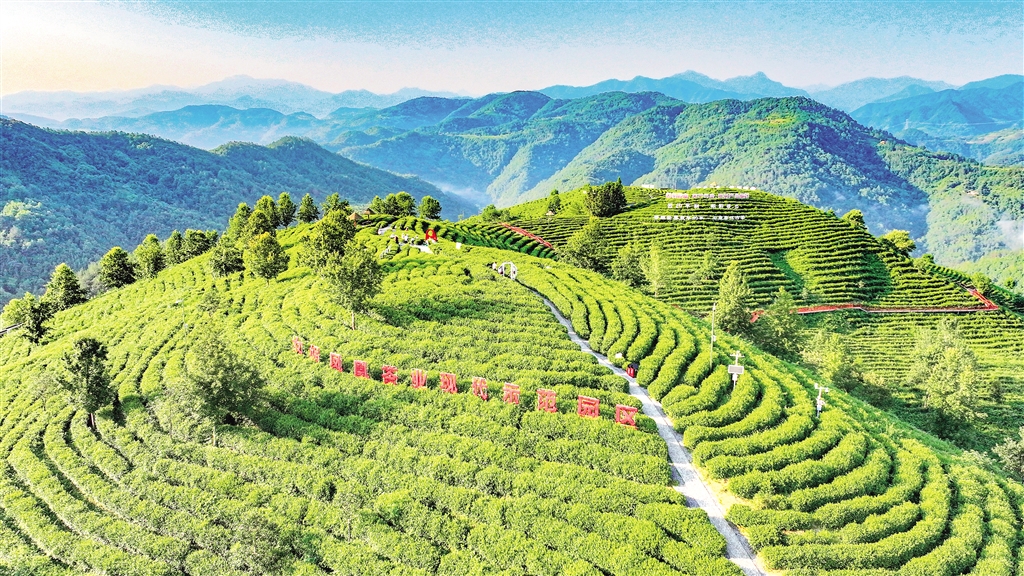 茶山上,茶農(nóng)忙著搶采春茶,游客穿梭其間打卡留影。目睹這熱鬧非凡的景象,蔣家坪村村民的臉上綻放出質(zhì)樸而滿足的笑容。大家驚喜地發(fā)現(xiàn),5年來,老縣鎮(zhèn)無邊光景一時新,自家茶園風(fēng)光旖旎,吸引眾多游客前來。從賣茶葉到“賣風(fēng)景”,蔣家坪村走出一條茶旅融合新路子,實現(xiàn)生態(tài)效益與經(jīng)濟效益“雙豐收”,發(fā)展成果不斷惠及群眾。