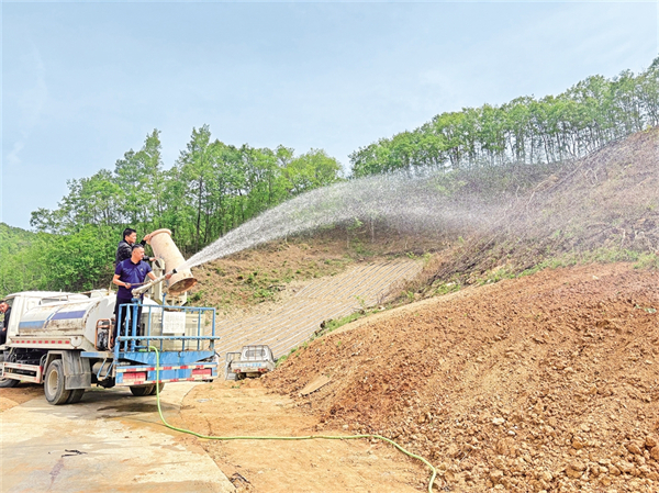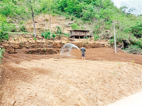 4月25日,平利縣長安鎮(zhèn)金沙河村安排運輸投送農(nóng)業(yè)生產(chǎn)用水,對500畝烤煙幼苗進(jìn)行灌溉。胡鈴鈴 攝845安康新聞網(wǎng)