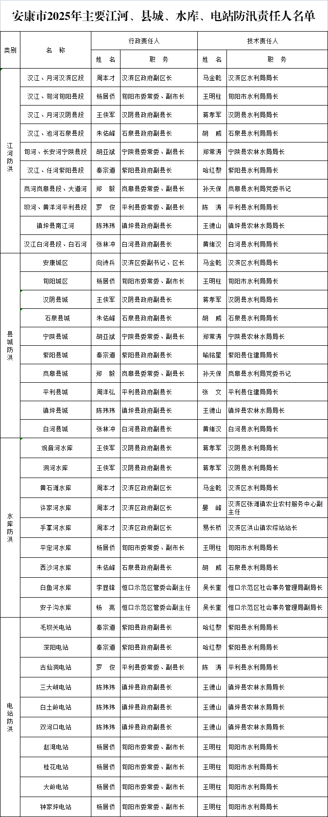 附件:安康市2025年主要江河、縣城、水庫、電站防汛責(zé)任人名單
