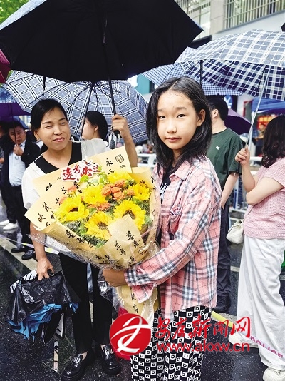 fed安康新聞網(wǎng) 6月7日上午,安康中學(xué)考點(diǎn)外妹妹正手捧鮮花等待完成第一場考試的姐姐。 鄭時根 攝fed安康新聞網(wǎng)