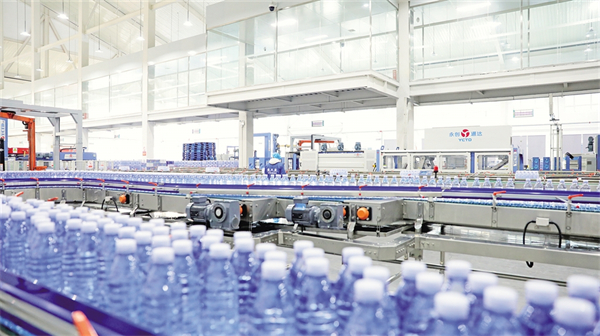 走進(jìn)位于漢濱區(qū)關(guān)廟鎮(zhèn)龍王泉村的安康龍王泉富硒礦泉水有限公司基地,一輛輛貨車排起長(zhǎng)龍,有序等待裝貨。全自動(dòng)生產(chǎn)線上,經(jīng)過(guò)吹瓶、灌裝、旋蓋、噴碼、貼標(biāo)等工序,一瓶瓶富硒礦泉水魚貫而出。“目前日發(fā)貨量超3萬(wàn)件,省外訂單同比增長(zhǎng)40%。”該公司辦公室主任李海安指著運(yùn)往深圳的貨柜說(shuō)。