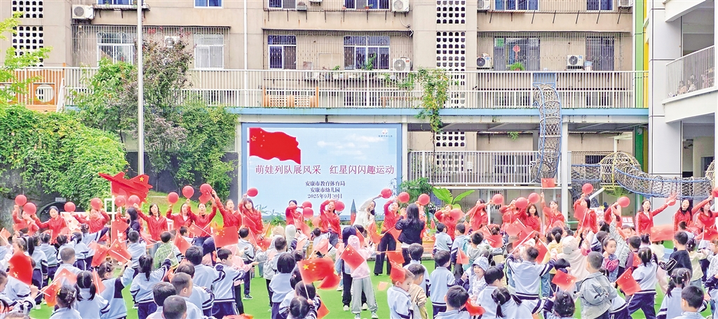 9月30日,安康市幼兒園舉辦“萌娃列隊展風采 紅星閃閃趣運動”國慶主題活動。 李生珍 攝wxP安康新聞網(wǎng)