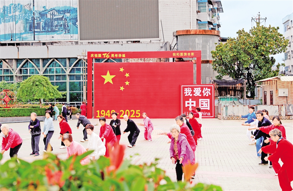 石泉縣在人民廣場、春潮廣場設(shè)置了“我和國旗合影”等主題拍照打卡點,營造了濃濃的節(jié)日氛圍。 許兵 攝wxP安康新聞網(wǎng)