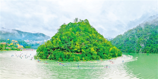 10月5日,嵐皋縣舉辦2025中國嵐韻“夢(mèng)見蓬萊杯”歡樂槳板大獎(jiǎng)賽,吸引眾多游人前來觀賽觀光。唐軍 攝9KX安康新聞網(wǎng)