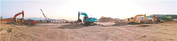 安康新聞網(wǎng)訊(記者 吳單 潘潤生)近200臺(tái)翻斗車來回穿梭運(yùn)送土石方,重達(dá)20噸的吊錘反復(fù)被大型強(qiáng)夯機(jī)從幾十米高空拉起、拋下,發(fā)出聲聲巨響,百米之外仍能感受到夯地的震動(dòng)感。腳手架上、交通路口,工人們有條不紊地進(jìn)行著作業(yè)、指揮著交通……夜幕下的機(jī)場(chǎng)施工現(xiàn)場(chǎng)一片繁忙。