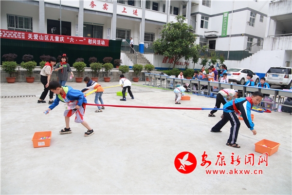 捐贈儀式結(jié)束后,正溝小學師生和市婦幼保健院醫(yī)務人員開展了聯(lián)誼活動,通過“抓尾巴”、“跳跳袋”、“扭扭樂”、“東西南北跑”等游戲,拉近了師生之間的距離,也讓孩子們體驗了游戲的樂趣和童真。孩子們還一起分享了市婦幼保健院為他們帶來的蛋糕,大家在一片歡聲笑語中度過了一個愉快、難忘的節(jié)日。
