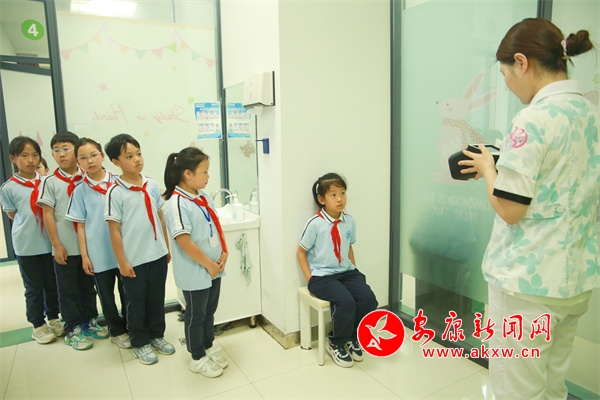 同學(xué)們在醫(yī)院院前廣場整齊列隊,在講解員的帶領(lǐng)下,了解了“快樂婦幼”雕像、婦幼健康主題廣場以及醫(yī)院院徽所蘊含的深厚文化。隨后,他們分組進(jìn)行實地參觀,通過觀看“孕期胎兒成長記”視頻,被生命誕生的神奇過程深深吸引。在兒童保健科,醫(yī)生們以生動有趣的教學(xué)方式,講授了口腔和視力保健的基礎(chǔ)知識,并為每位小朋友進(jìn)行了細(xì)致的口腔檢查和視力篩查。整個活動期間,孩子們的眼神中充滿了對未知世界的好奇和對母親無盡的感激與愛意。