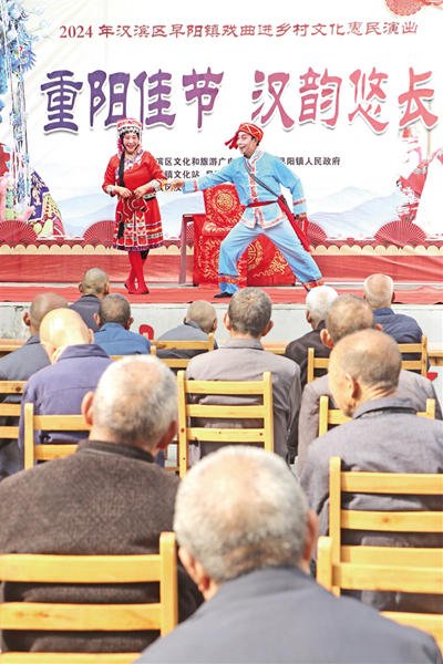 10月10日,安康漢水陽(yáng)光怡養(yǎng)園城東分院攜手江北街道張溝橋社區(qū),舉辦了一場(chǎng)別開(kāi)生面的文藝演出,為這里的老人送上節(jié)日祝福。  鄭團(tuán)吉 攝R4h安康新聞網(wǎng)