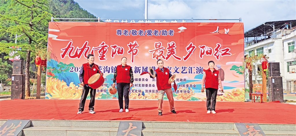 10月9日,漢濱區(qū)文旅廣電局聯(lián)合茨溝鎮(zhèn)茨口村舉辦了“九九重陽(yáng)節(jié) 最美夕陽(yáng)紅”孝義新風(fēng)進(jìn)萬(wàn)家文藝活動(dòng);顒(dòng)以“尊老、敬老、愛(ài)老、助老”為主題,茨溝鎮(zhèn)茨口村老年協(xié)會(huì)分會(huì)還為本村98名老年人統(tǒng)一購(gòu)買(mǎi)了紅馬甲和過(guò)冬的皮鞋,讓老人們度過(guò)一個(gè)幸福快樂(lè)的重陽(yáng)節(jié)。  余遲 攝R4h安康新聞網(wǎng)