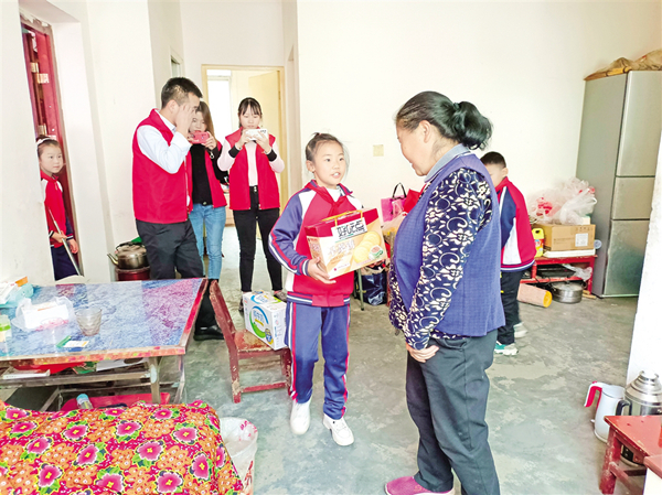 10月10日,石泉云霧山鎮(zhèn)中心小學(xué)組織部分學(xué)生為社區(qū)老人整理房間、打掃衛(wèi)生,還為老人送上節(jié)日的禮物。  譚相華 攝R4h安康新聞網(wǎng)