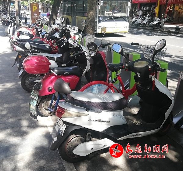 本網(wǎng)訊(記者 牟慶紅)7月31日,記者在興安中路一商城門前發(fā)現(xiàn),大量摩托車、電動(dòng)車扎堆停放在城市公共自行車樁旁,使得公共自行車無法?。J8v安康新聞網(wǎng)