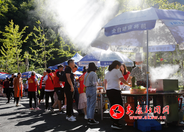 會(huì)場(chǎng)周?chē)母黝?lèi)鎮(zhèn)坪長(zhǎng)壽美食吸引了眾多游人駐足品嘗。hJe安康新聞網(wǎng)
