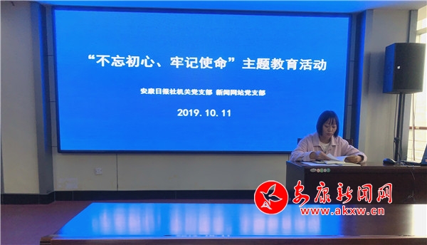 本網(wǎng)訊 (記者 郭倩)初心即情懷,使命乃擔(dān)當(dāng)。初心表達(dá)價(jià)值追求,使命體現(xiàn)奮斗目標(biāo)。10月11日上午,安康日?qǐng)?bào)社機(jī)關(guān)支部與安康新聞網(wǎng)站支部聯(lián)合開(kāi)展“不忘初心、牢記使命”主題教育活動(dòng),以“找回初心”為號(hào)召,以強(qiáng)化宗旨意識(shí)和理想信念為目的,立足崗位,“教、學(xué)”相融合,同步提升新聞采編業(yè)務(wù)專(zhuān)業(yè)技能和綜合業(yè)務(wù)能力,多樣形式開(kāi)展好主題教育活動(dòng)。ufM安康新聞網(wǎng)