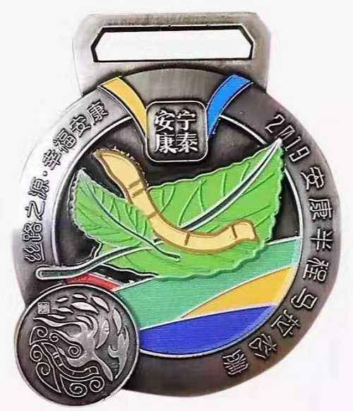 據(jù)獎(jiǎng)牌設(shè)計(jì)者金沙介紹,本次完賽獎(jiǎng)牌于十月初開(kāi)始設(shè)計(jì),10月29日正式公布。獎(jiǎng)牌正面核心畫(huà)面選擇了出土于安康的一級(jí)文物—鎏金銅蠶,銅蠶附于桑葉之上,既突出了悠久的桑蠶文化,又是本次主題“絲路之源”的體現(xiàn)。hmG安康新聞網(wǎng)