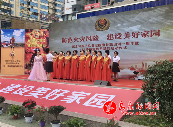 活動現(xiàn)場,相關(guān)負責人宣讀“社區(qū)消防宣傳大使”獲評名單并為十名“社區(qū)消防宣傳大使”頒發(fā)了聘書,F(xiàn)場人員先后觀看了大型城市商業(yè)綜合體滅火救援演練短片、成品油庫突發(fā)險情消防救援演練短片。相關(guān)消防人員進行了消防救援設備展示,向觀眾展示了消防無人機等消防救援設備。安康市詩詞協(xié)會朗誦藝術(shù)社、社區(qū)群眾先后表演了詩朗誦《永恒的信念》和合唱《山丹丹花開紅艷艷 我和我的祖國》。隨后,相關(guān)工作人員為現(xiàn)場群眾發(fā)放了消防安全明白卡、消防安全知識手冊等各類消防宣傳資料。LjF安康新聞網(wǎng)