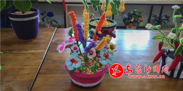走進(jìn)旬陽縣城關(guān)鎮(zhèn)老城社區(qū),一個(gè)專為老年人打造的 “巧手坊”很是吸引人。溫馨的燈光,溫暖的房間,桌子上、架子上擺滿了百合、菊花、鴻運(yùn)當(dāng)頭等手工藝編織品,都是普通的毛線編織而成。若不仔細(xì)看,這些“綠植”和“盆栽”足能以假亂真。3GU安康新聞網(wǎng)