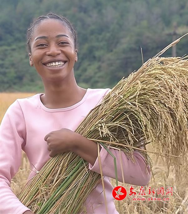 11月24日,冬日的陜南五彩繽紛,如詩如畫,平利縣大貴鎮(zhèn)后灣村一株株果樹掛滿了黃澄澄的獅頭柑,一位皮膚黝黑、身材高挑的女子連續(xù)幾天忙碌于果園里,她干活麻利,時不時發(fā)出“咯咯”的笑聲,在人群中格外醒目。村民們說:“幸虧有了這個非洲女兒幫忙,她一口氣買走了3000公斤的獅頭柑,才解決了我們獅頭柑滯銷的問題。”