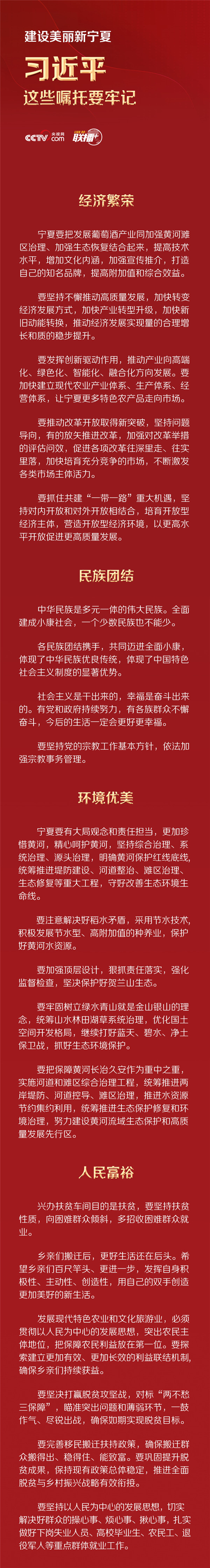 “要全面落實(shí)黨中央決策部署,堅(jiān)持穩(wěn)中求進(jìn)工作總基調(diào),堅(jiān)持新發(fā)展理念,落實(shí)全國‘兩會’工作部署,堅(jiān)決打好三大攻堅(jiān)戰(zhàn),扎實(shí)做好‘六穩(wěn)’工作,全面落實(shí)‘六保’任務(wù),努力克服新冠肺炎疫情帶來的不利影響,優(yōu)先穩(wěn)就業(yè)保民生,決勝全面建成小康社會,決戰(zhàn)脫貧攻堅(jiān),繼續(xù)建設(shè)經(jīng)濟(jì)繁榮、民族團(tuán)結(jié)、環(huán)境優(yōu)美、人民富裕的美麗新寧夏。”