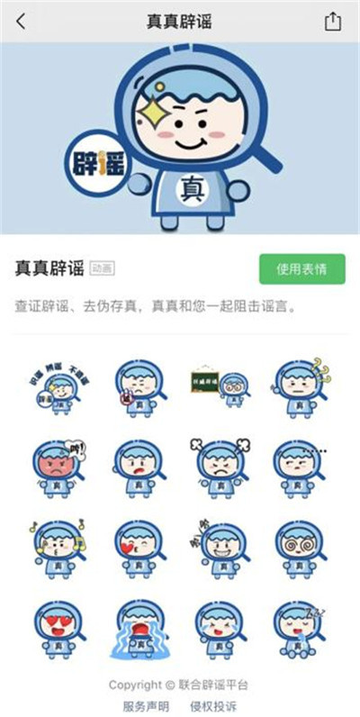 我為自己設(shè)計(jì)了一個(gè)可愛(ài)的卡通形象——真真,在微信表情商店上線了16款表情,讓辟謠“動(dòng)起來(lái)”,在指尖傳遞正能量。同時(shí),我還推出了“真真說(shuō)”系列辟謠短視頻,用生動(dòng)可愛(ài)的方式將辟謠知識(shí)傳遞給大家,寓教于樂(lè)。