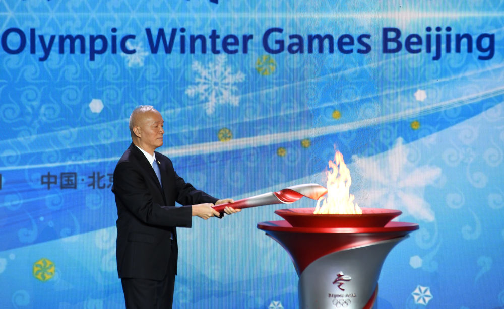 ⬆️在火種歡迎儀式上,北京市委書記、北京冬奧組委主席蔡奇點燃儀式火種臺。ban安康新聞網(wǎng)