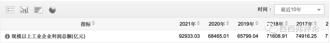 有不好的,也有好的。2021年,規(guī)模以上工業(yè)企業(yè)利潤(rùn)總額,同比增長(zhǎng)超過30%,從6.8萬億,增長(zhǎng)到9.3萬億。2022年1-10月,雖然同比有所下降,但也遠(yuǎn)高于2019年1-10月水平。