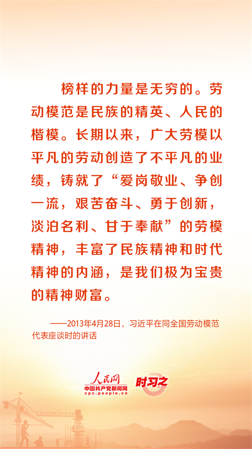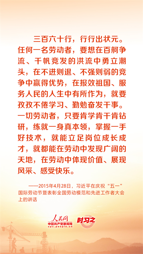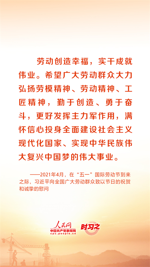 人民創(chuàng)造歷史,勞動(dòng)開(kāi)創(chuàng)未來(lái)。黨的十八大以來(lái),習(xí)近平總書(shū)記始終心系全國(guó)廣大勞動(dòng)者,激勵(lì)廣大勞動(dòng)者在平凡崗位上續(xù)寫(xiě)不平凡的故事。在“五一”國(guó)際勞動(dòng)節(jié)到來(lái)之際,讓我們重溫總書(shū)記的諄諄話(huà)語(yǔ),用辛勤勞動(dòng)為經(jīng)濟(jì)社會(huì)發(fā)展貢獻(xiàn)力量。