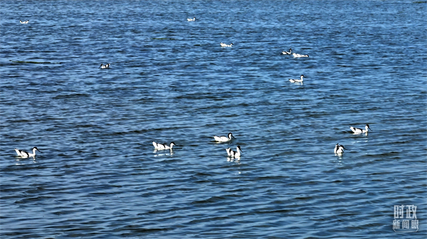 △鹽湖棲息的鳥類。(總臺記者裴大偉、康曉宇拍攝)