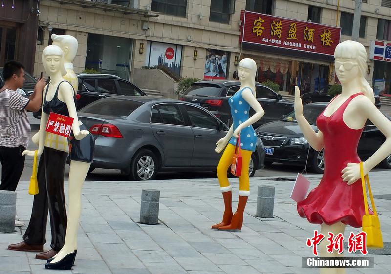 湖北一廣場(chǎng)性感模特塑像誘人“嚴(yán)禁觸摸”