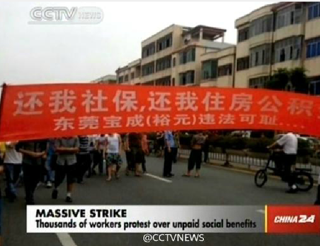 東莞最大鞋廠幾千工人抗議廠方社保標(biāo)準(zhǔn)過(guò)低5日,廣東東莞最大鞋廠—裕元鞋廠幾千名員工因質(zhì)疑廠方以臨時(shí)工標(biāo)準(zhǔn)為工作十多年的員工購(gòu)買(mǎi)社保,與員工簽訂無(wú)效……