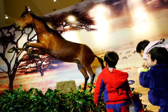 圖為市民正在觀看展覽。湯彥俊 攝1月23日,正在上?萍拣^舉行的“騏驥盛壯”馬年生肖展吸引了眾多市民前來參觀。該展覽旨在馬年春節(jié)來臨之際,以馬的生物和文化……