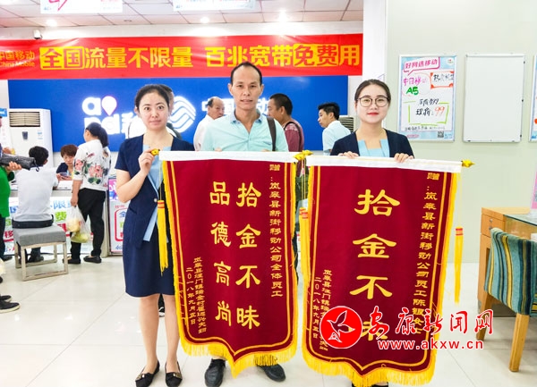 今天,翟先生特意為陳銀及嵐皋營業(yè)班送來了錦旗,現(xiàn)場客戶及工作人員對(duì)營業(yè)員陳銀拾金不昧的高尚情操和品德報(bào)以熱烈掌聲。