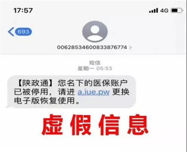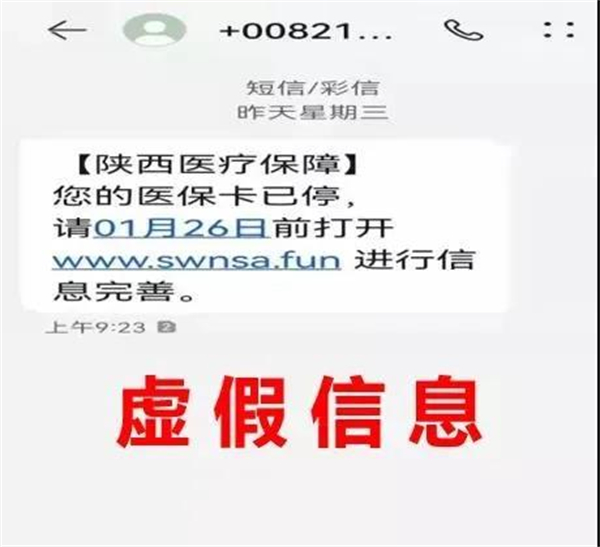 陜西省醫(yī)療保障局提醒:此類短信為詐騙短信,請(qǐng)勿輕信。