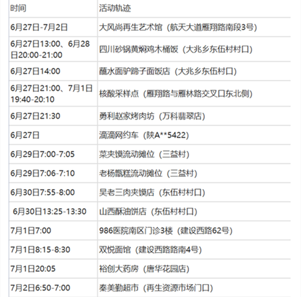 西安市新增1例本土確診病例活動(dòng)軌跡公布