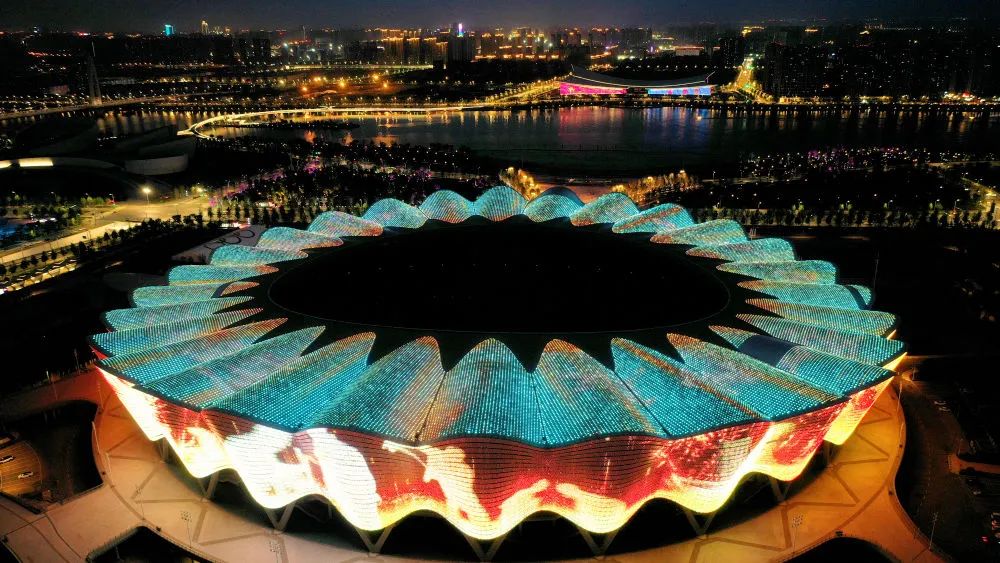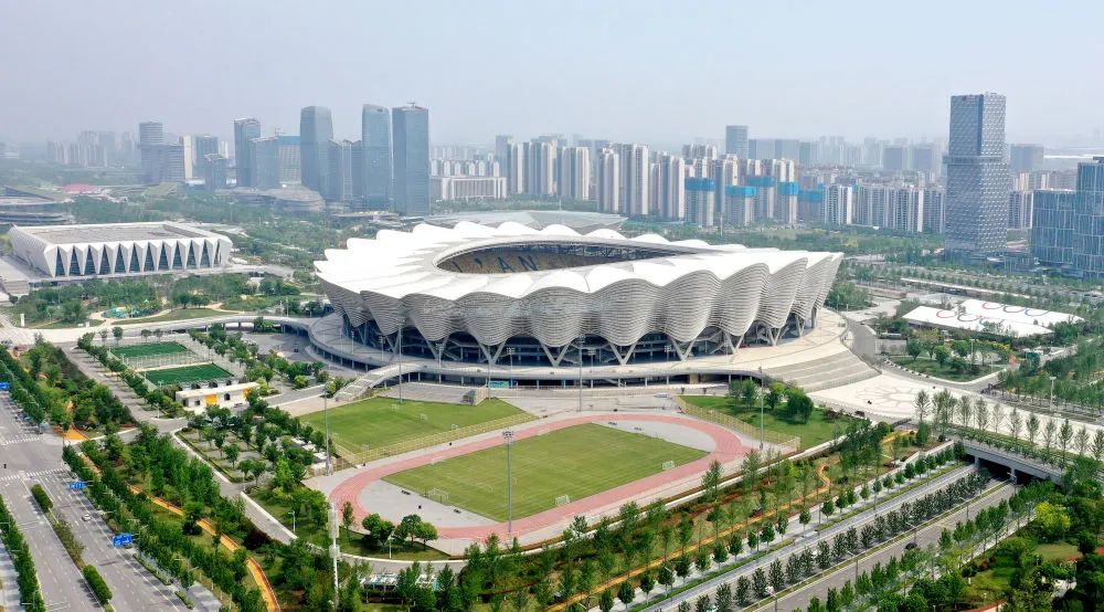 ↑位于西安國(guó)際港務(wù)區(qū)的西安奧體中心(5月1日攝,無(wú)人機(jī)照片)。新華社記者 劉瀟 攝