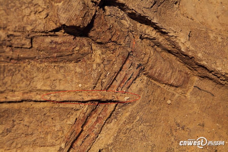 弓弦(紅色部分)直徑約0.8厘米,經(jīng)考古專家仔細(xì)觀察分析,推測(cè)材質(zhì)可能是動(dòng)物的筋。(秦始皇帝陵博物院 供圖)CkC安康新聞網(wǎng)