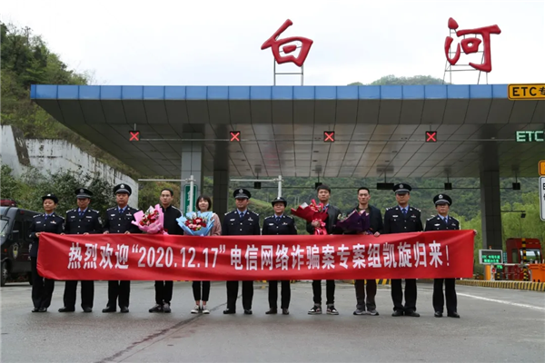 3月31日上午,白河縣公安局在十天高速白河出口舉行儀式,熱烈歡迎“2020.12.17”電信網(wǎng)絡(luò)詐騙案專案組凱旋。公安局局長(zhǎng)譚簡(jiǎn)出席儀式并講話,相關(guān)警種部門負(fù)責(zé)人及民警代表參加了儀式。Ch6安康新聞網(wǎng)