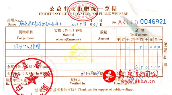 本網(wǎng)訊(通訊員 李玉興)近日,持續(xù)的強(qiáng)降雨導(dǎo)致白河縣境內(nèi)滑坡、泥石流等自然災(zāi)害頻發(fā),道路中斷,導(dǎo)致數(shù)以千計(jì)的群眾被迫轉(zhuǎn)移。災(zāi)情不僅牽動(dòng)著每一名白河人的心,也讓一位遠(yuǎn)在陜北的“老朋友”記掛萬(wàn)分。8月31日一早,白河縣民政局救災(zāi)捐贈(zèng)專戶上收到一筆來自陜西府谷縣的特殊捐款,這也是發(fā)生暴雨災(zāi)情后收到的第一筆個(gè)人捐款。